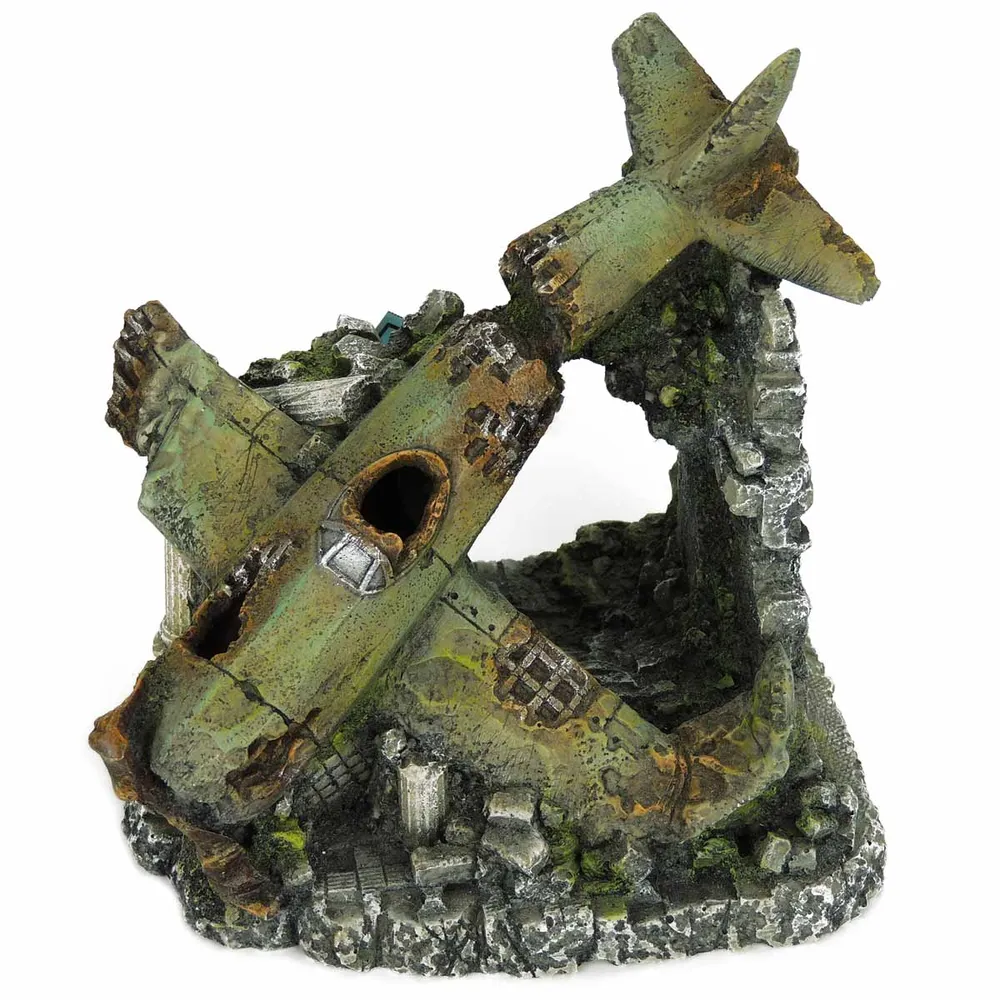 Vrak Flyplan 152x112x155mm är en dekorativ prydnad som passar perfekt i både söt- och saltvattensakvarium. Skapa en spännande och naturliknande miljö för dina fiskar med denna detaljerade dekoration.